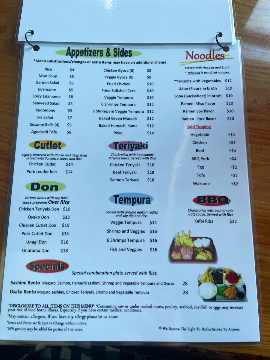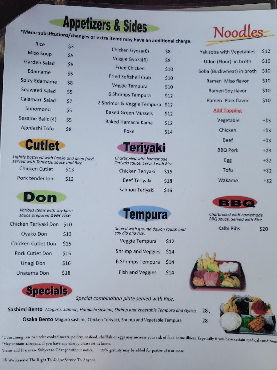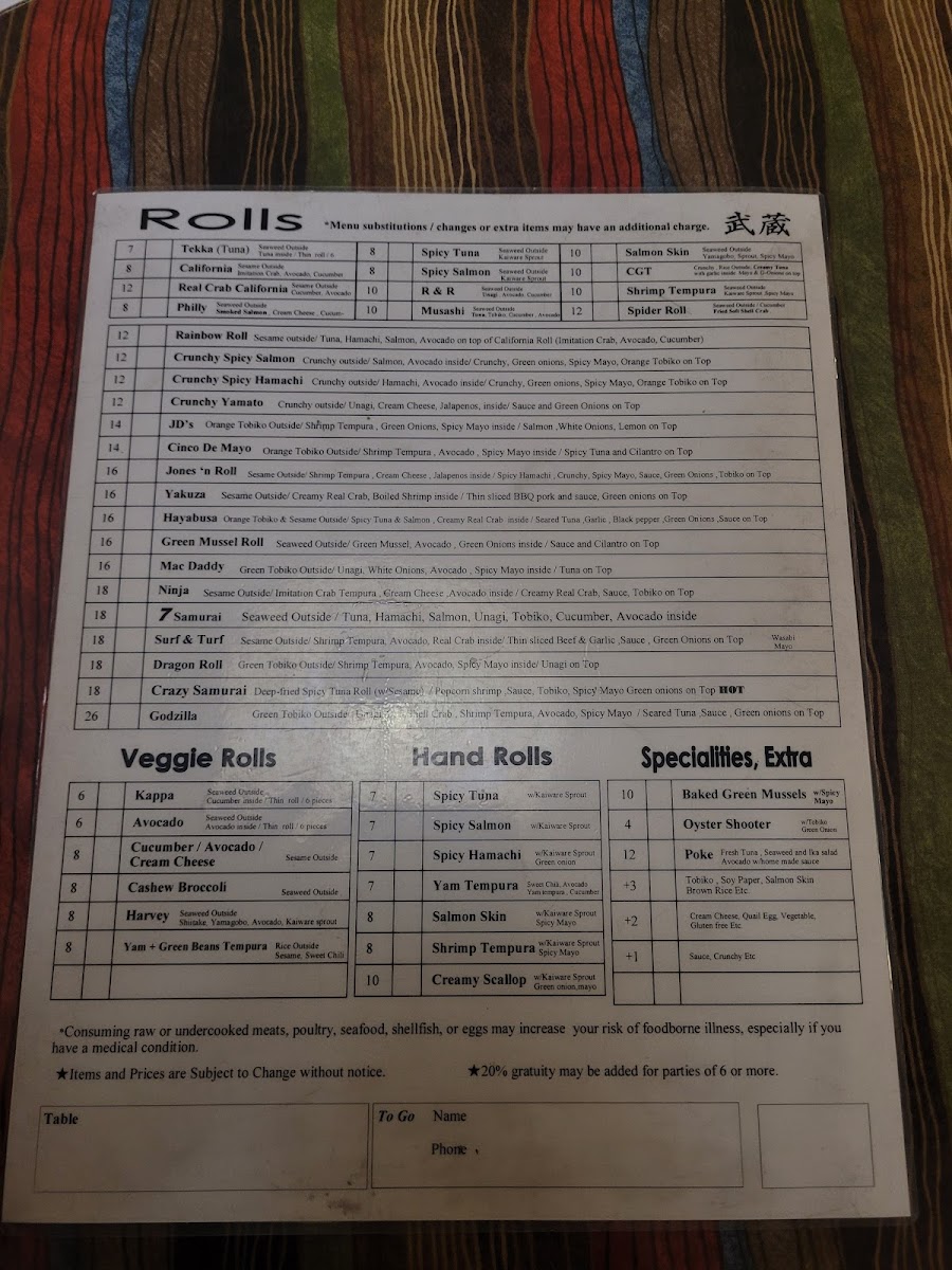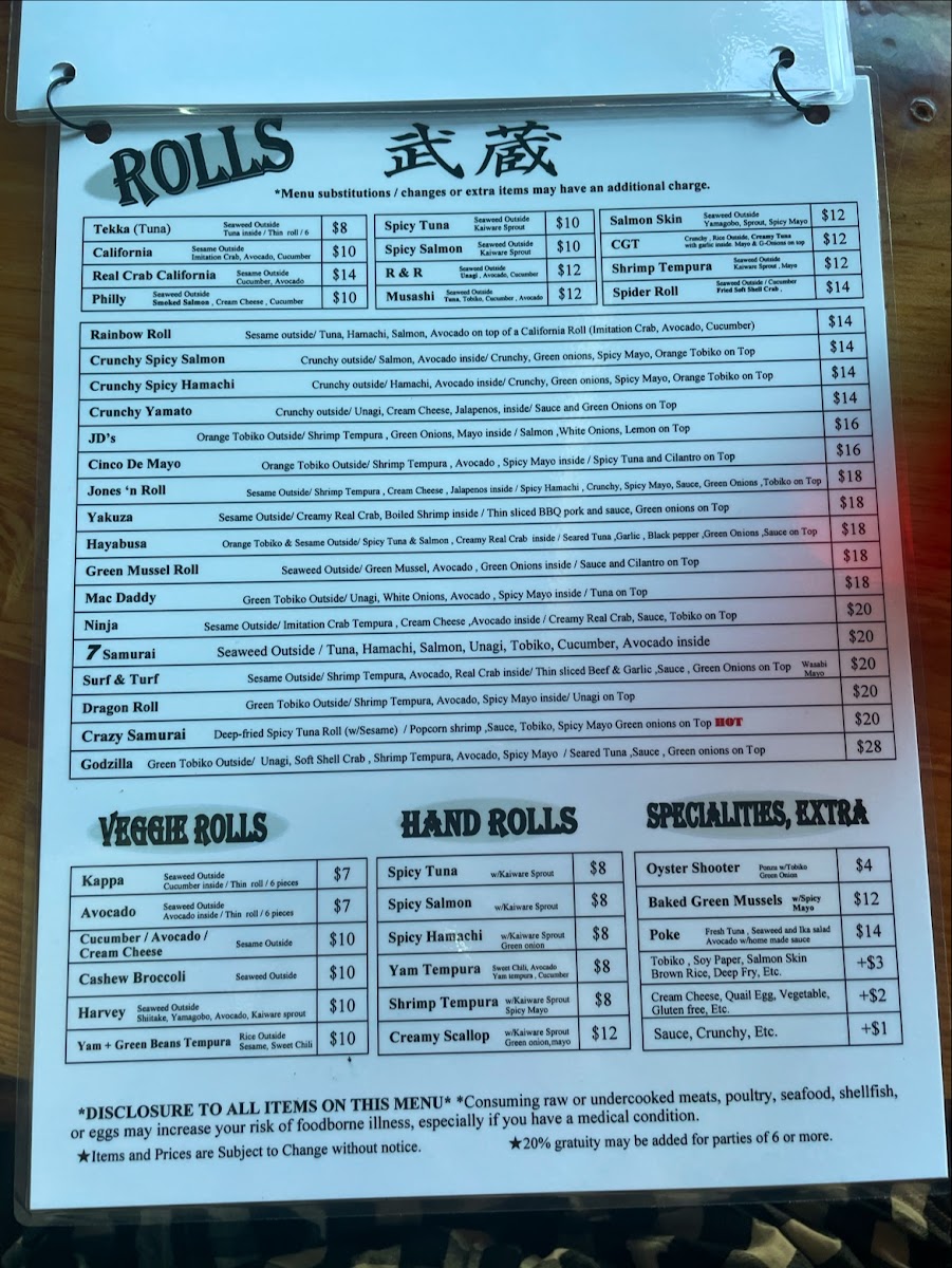 Musashi Sushi Bar and Japanese Cuisine Menu